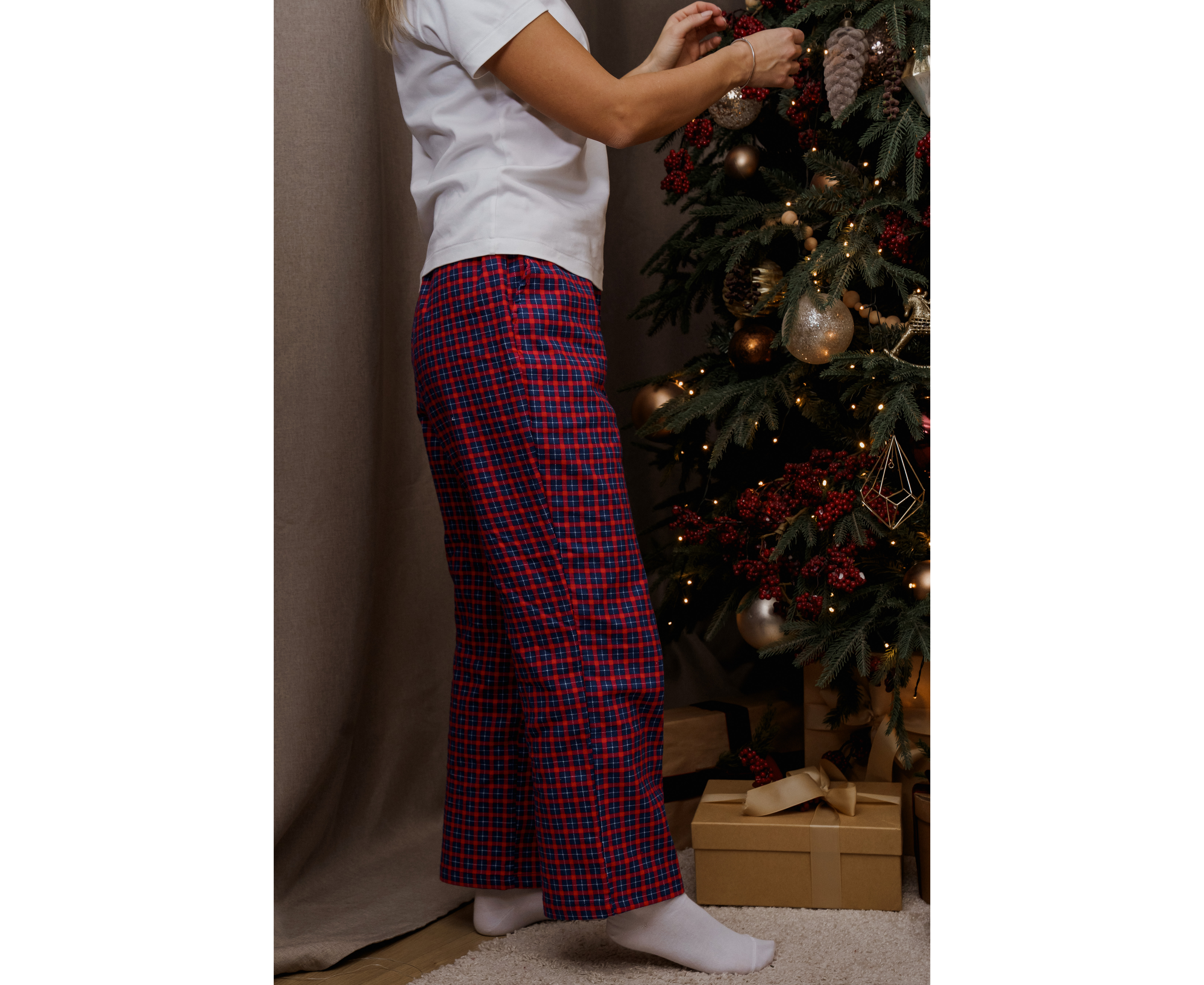 Брюки из хлопка - идеальный вариант домашней одежды. Свободные брюки выполнены в клетчатом стиле, что добавляет им особое очарование. Красно-синяя клетка подходит для людей любого возраста, позволяя выглядеть модно и стильно даже в домашней обстановке. Брюки изготовлены из натурального хлопка, что обеспечивает максимальный комфорт в повседневной жизни.