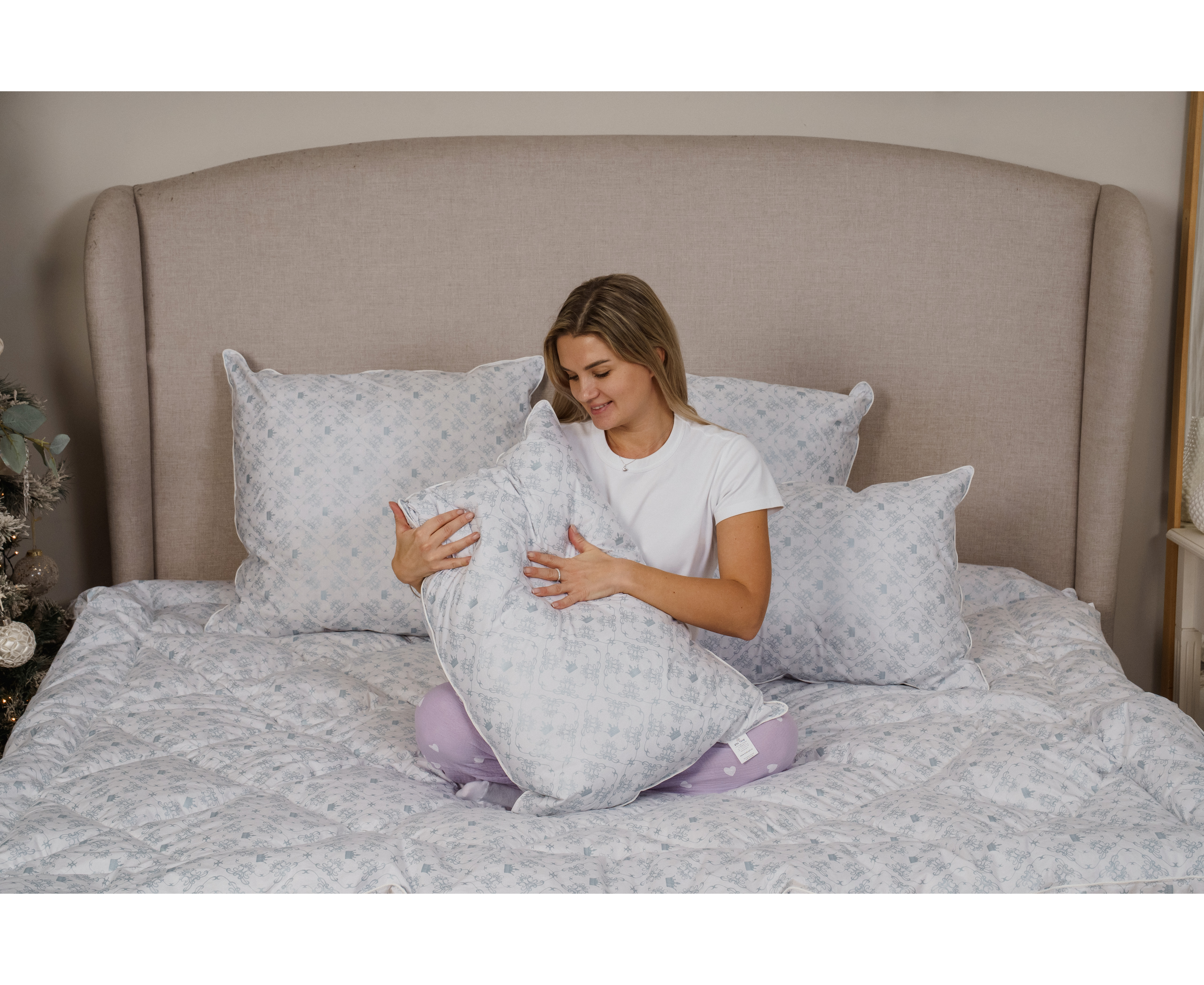 Коллекция выполнена из натуральной хлопковой ткани со специальной пропиткой. Она не позволяет пуху пробиваться на поверхность. Сочетание высокого содержания пуха позволяет голове принять удобное положение на подушке и фиксирует его на протяжении всего сна. На ощупь она мягкая и легкая, легко взбивается и восстанавливает изначальную форму. Подушку нужно периодически проветривать, чтобы продлить срок изделия.